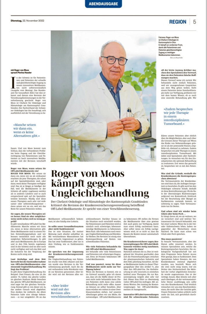 Referent: Prof Dr med Roger Von Moos, Direktor Tumor- und Forschungszentrum Kantonsspital Graubünden