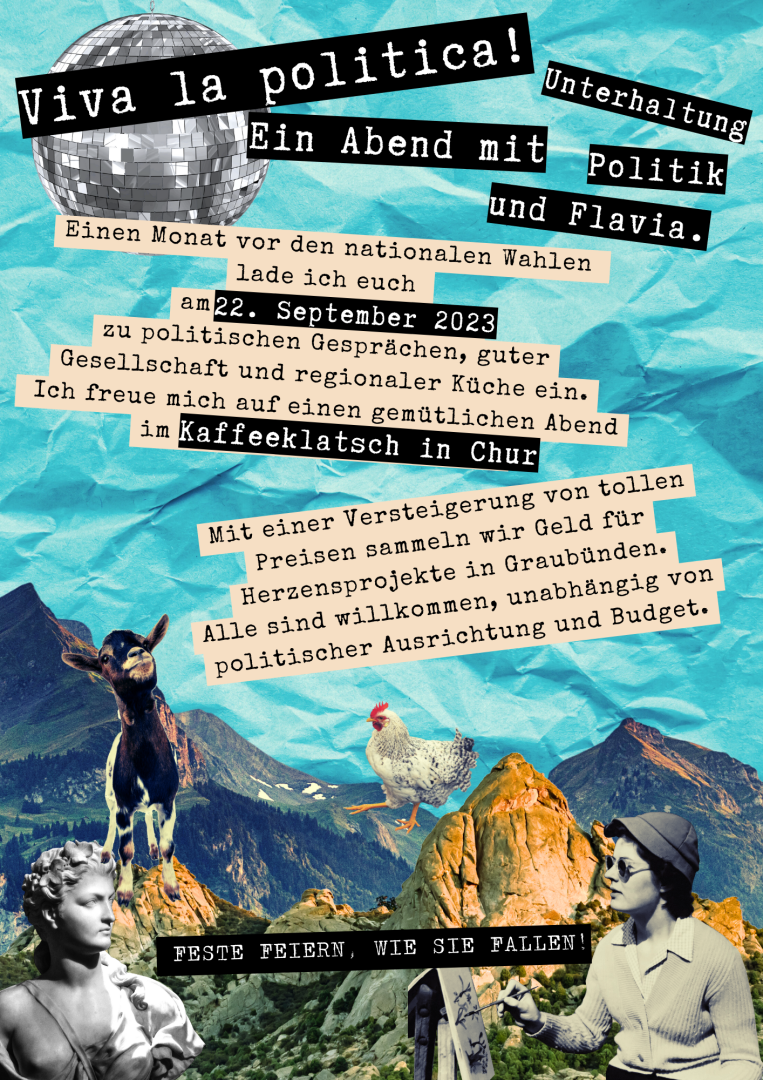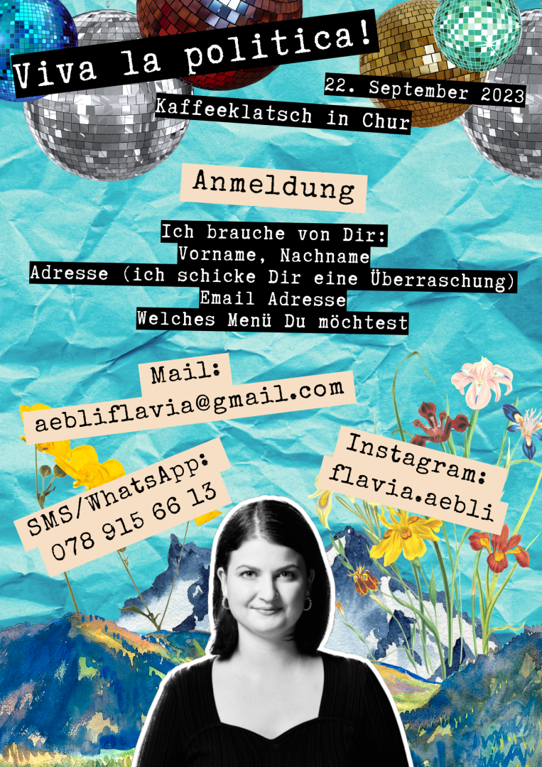 Aktuell 25.08.2023 Viva la Politica! Ein Abend mit Nationalratskandidatin Flavia Aebli 22. September 2023, ab 18:30 Uhr im Kaffeeklatsch in Chur Viva la Politica! Ein Abend mit Nationalratskandidatin Flavia Aebli Previous Next